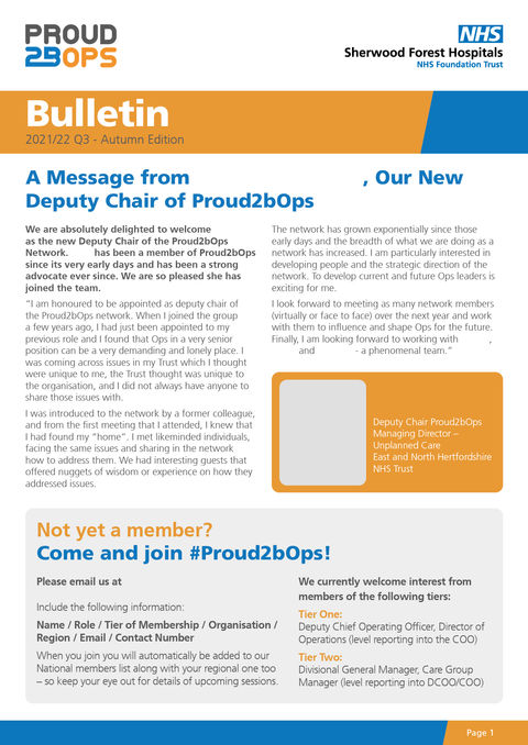 A new logo for 'Proud 2B Ops' was developed for an internal newsletter shared across various hospitals to unify and celebrate each of their operations departments.